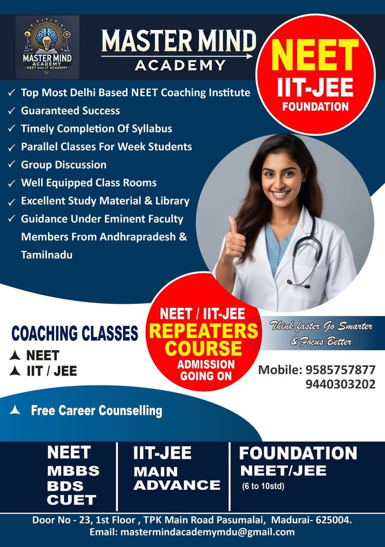 Master Mind Academy transformed my preparation for NEET and IIT! The faculty is exceptional, and the resources available are invaluable. Highly recommend this coaching center!